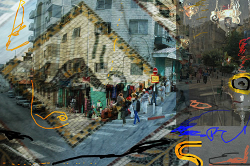 The latest images from Iran are sent to me via email from my Iranian colleague. This is a collaboration between myself and my contact who at this stage wishes to remain anonymous. In the last two years I have visited Israel and Dubai where I photographed cities, landscapes and people in Jerusalem, Judea, Ramallah and Dubai. Upon returning to the UK I re-worked the images with paint marks and text in photoshop, merging them together to create a new narrative. Sharing our experiences of some of the world's ancient places.
